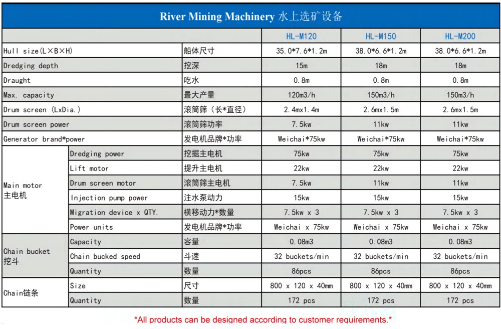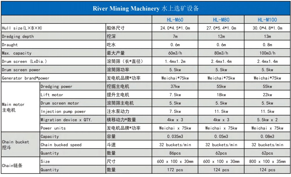 Bucket Chain Gold Dredger , The hull adopts the assembled box structure. Equipped with operating room, generatorsets, digging devices, sand separation devices, the primary gold extraction device, vibrating selected device, taiingsrecovery, tailings delivery devices, lifting devices, positioning devices .can be designed according to the workingenvironment.