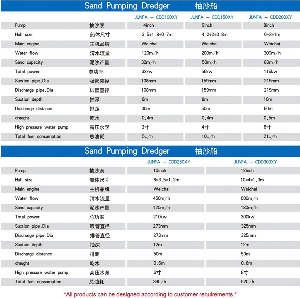 Use high pressure water pump rush sand, transportation sand-water mixture to designated spotwith sand pump, suction head and pipe, lt can use cooperatively with self-suction-unloadship and plat transportation ship.